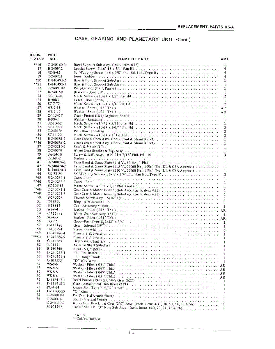 Parts for Whirlpool K5A: 05 - Section Parts