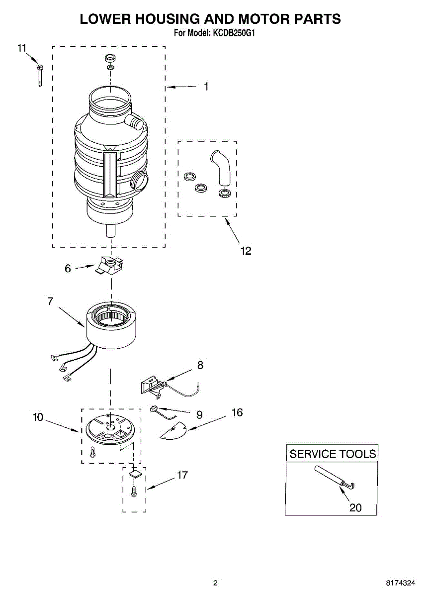 Emergency wrench assembly for garbage disposals. Installs on disposal unit for manual jam clearing. Replace if lost, broken, or missing from installation.