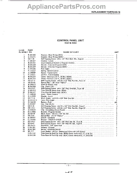 Parts for Kitchenaid KD19: 07 - Section Parts
