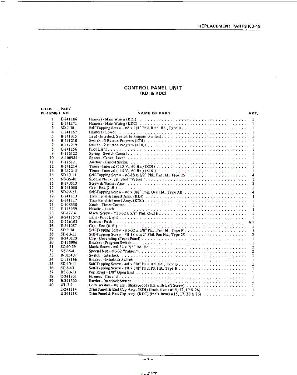 Parts for Kitchenaid KDC19: 07 - Section Parts