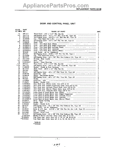 Parts for Kitchenaid KDD68: 07 - Section Parts