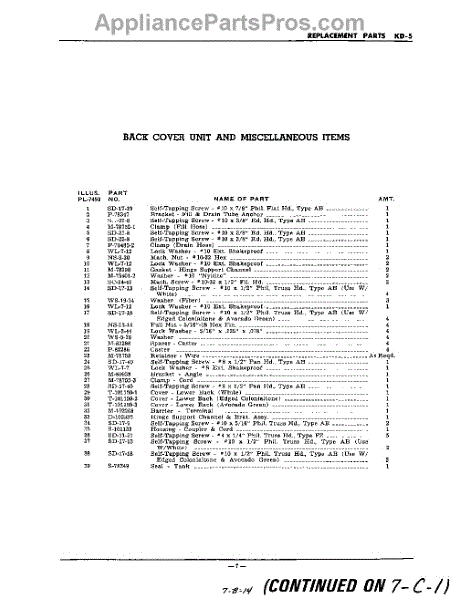 Parts for Kitchenaid KDE5: 07 - Section Parts