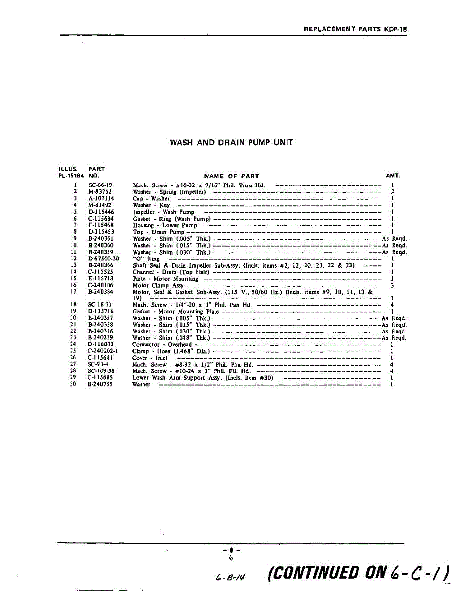 Parts for Kitchenaid KDP18: 06 - Section Parts