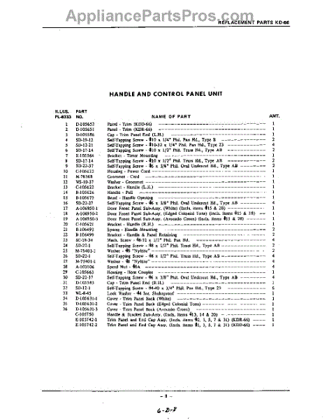 Parts for Kitchenaid KDR66: 08 - Section Parts