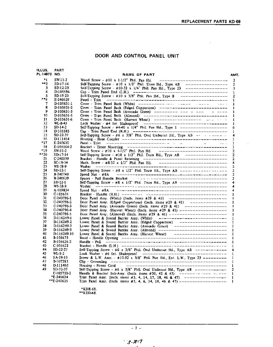 Parts for Kitchenaid KDR68: 07 - Section Parts