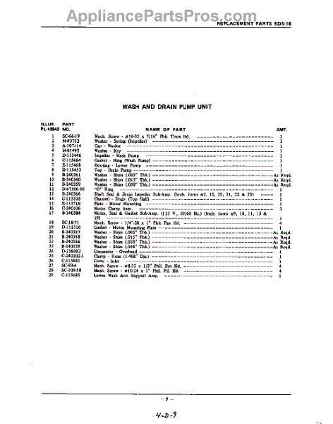 Parts for Kitchenaid KDS18: 09 - Section Parts