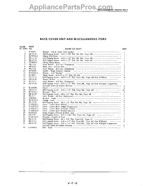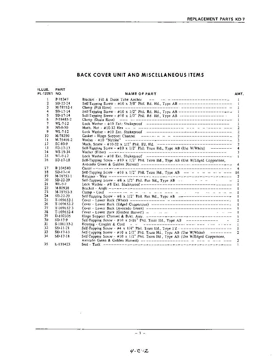 Parts for Kitchenaid KDW7: 07 - Section Parts