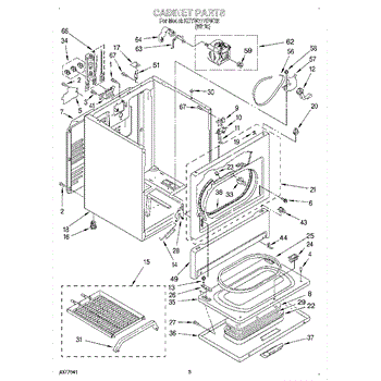 Fits all Whirlpool-made dryers (Whirlpool, Kenmore with prefix 110, Roper, KitchenAid, and Estate). Matching belt 341241 and rear support rollers 349241T. Whirlpool dryer repair manual 677818L.