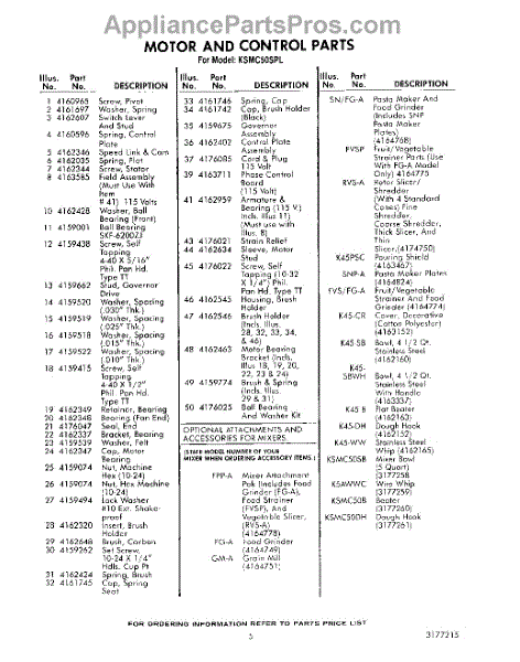 Parts for Kitchenaid KSMC50SPL: 05 - Section Parts