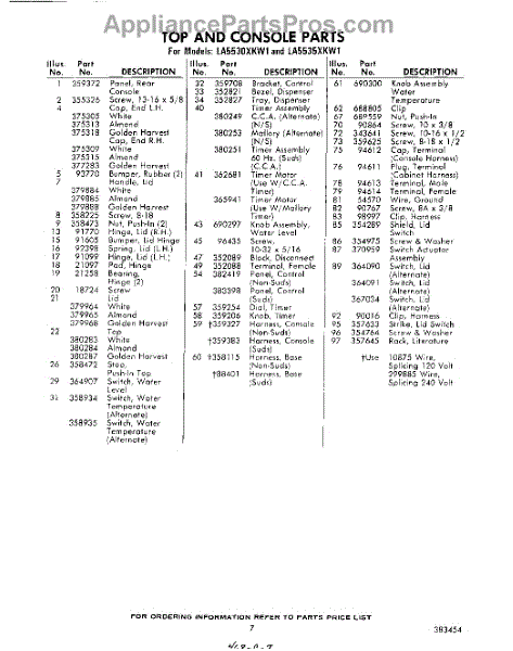 Parts for Whirlpool LA5530XKW1: 07 - Section Parts