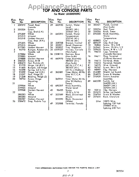Parts for Whirlpool LA5600XKW2: 07 - Section Parts