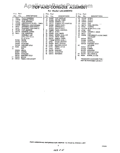 Parts for Whirlpool LAC4500W0: 05 - Section Parts