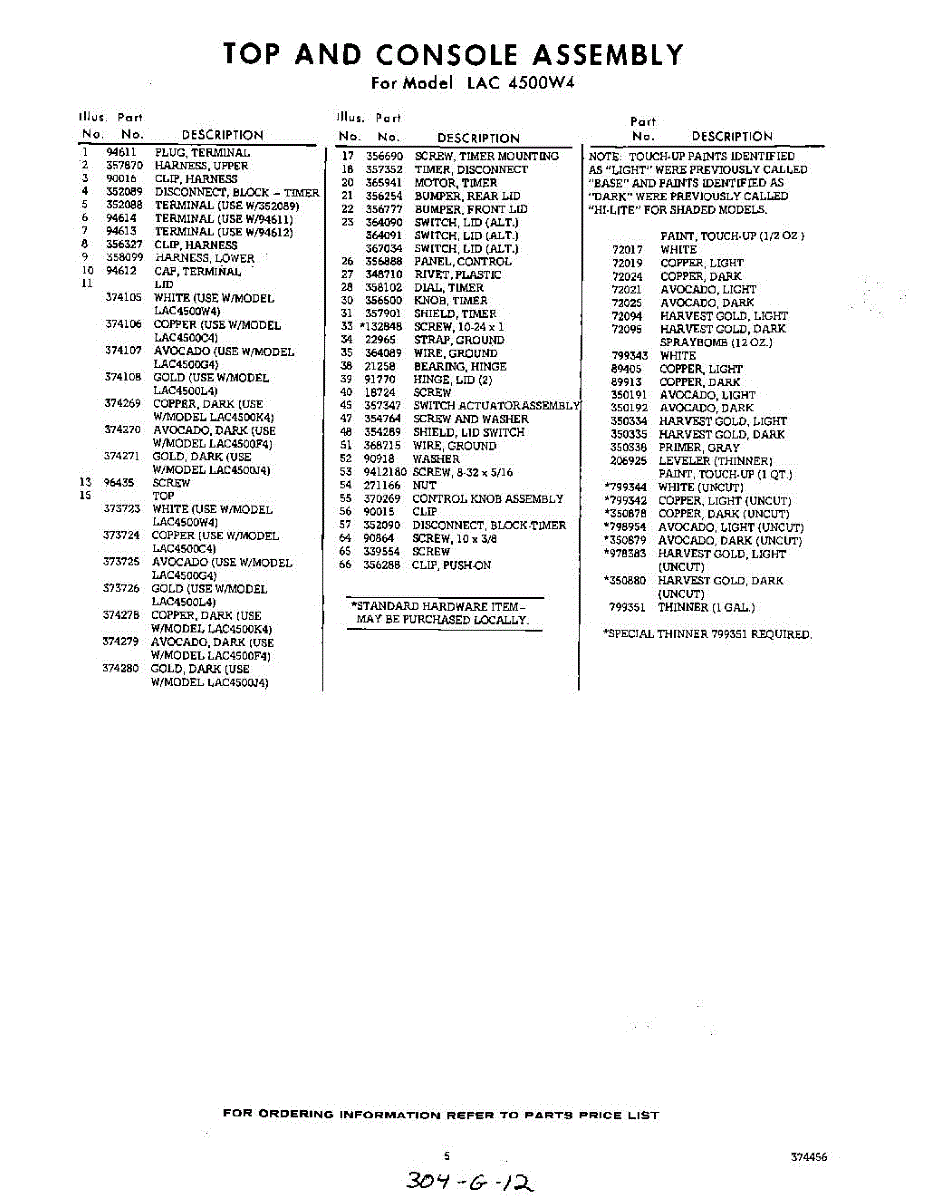 Parts for Whirlpool LAC4500W4: 05 - Section Parts