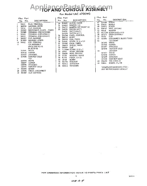 Parts for Whirlpool LAC4700W0: 05 - Section Parts