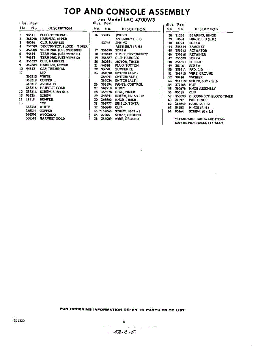 Parts for Whirlpool LAC4700W3: 05 - Section Parts
