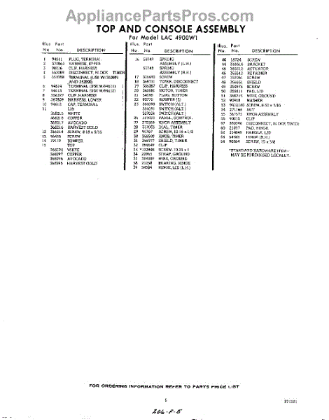 Parts for Whirlpool LAC4900W1: 05 - Section Parts