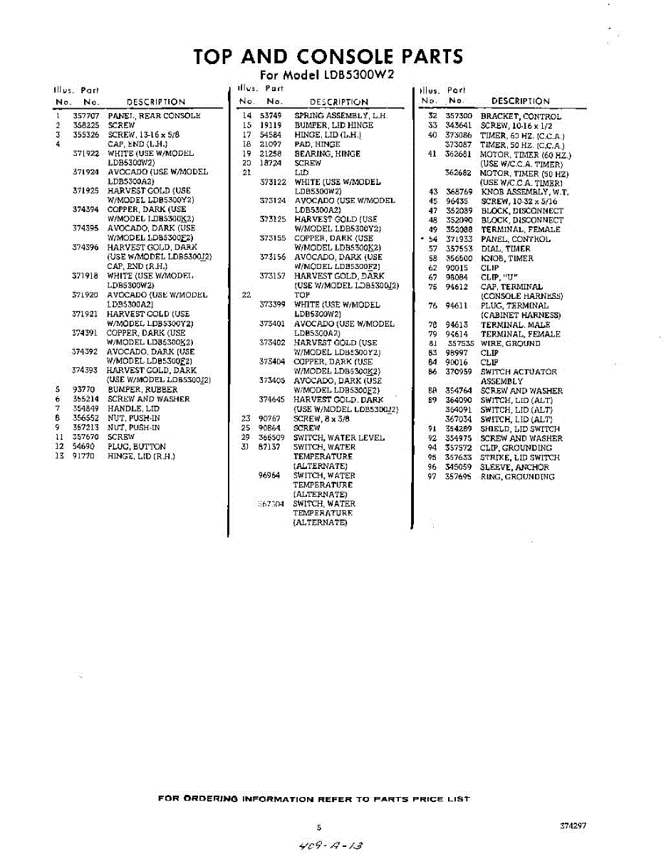 Parts for Whirlpool LDB5300W2: 05 - Section Parts