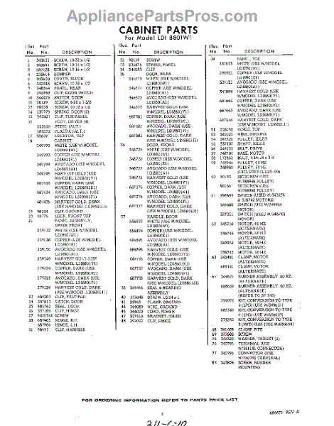 Parts for Whirlpool LDI8801W1: 05 - Section Parts