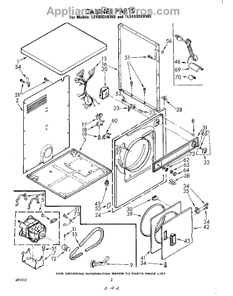 Fits all Whirlpool-made dryers (Whirlpool, Kenmore with prefix 110, Roper, KitchenAid, and Estate). Matching belt 341241 and rear support rollers 349241T. Whirlpool dryer repair manual 677818L.