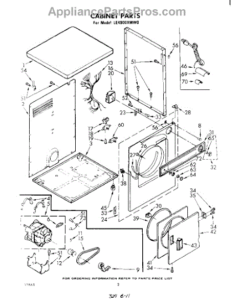 Fits all Whirlpool-made dryers (Whirlpool, Kenmore with prefix 110, Roper, KitchenAid, and Estate). Matching belt 341241 and rear support rollers 349241T. Whirlpool dryer repair manual 677818L.
