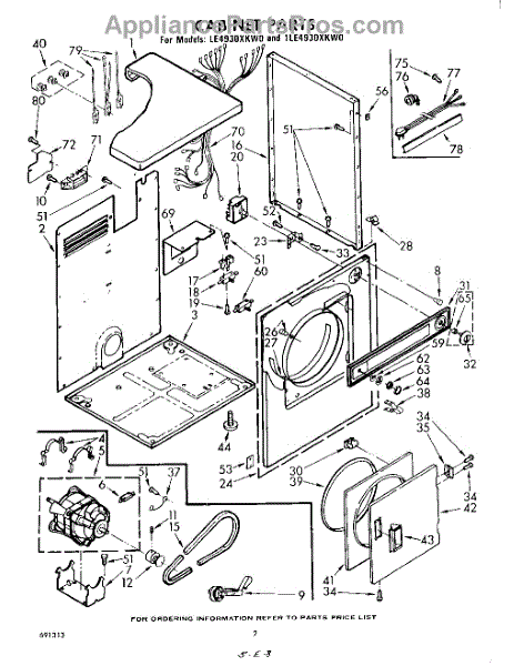 Fits all Whirlpool-made dryers (Whirlpool, Kenmore with prefix 110, Roper, KitchenAid, and Estate). Matching belt 341241 and rear support rollers 349241T. Whirlpool dryer repair manual 677818L.