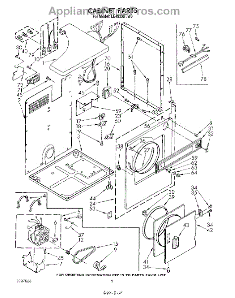 Fits all Whirlpool-made dryers (Whirlpool, Kenmore with prefix 110, Roper, KitchenAid, and Estate). Matching belt 341241 and rear support rollers 349241T. Whirlpool dryer repair manual 677818L.