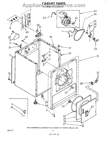 Fits all Whirlpool-made dryers (Whirlpool, Kenmore with prefix 110, Roper, KitchenAid, and Estate). Matching belt 341241 and rear support rollers 349241T. Whirlpool dryer repair manual 677818L.