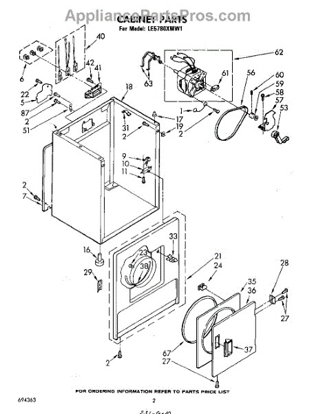 Fits all Whirlpool-made dryers (Whirlpool, Kenmore with prefix 110, Roper, KitchenAid, and Estate). Matching belt 341241 and rear support rollers 349241T. Whirlpool dryer repair manual 677818L.