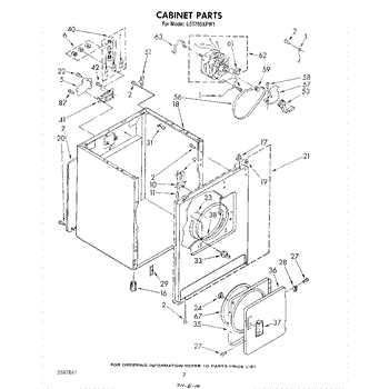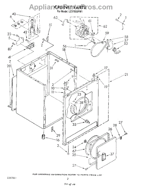 Fits all Whirlpool-made dryers (Whirlpool, Kenmore with prefix 110, Roper, KitchenAid, and Estate). Matching belt 341241 and rear support rollers 349241T. Whirlpool dryer repair manual 677818L.