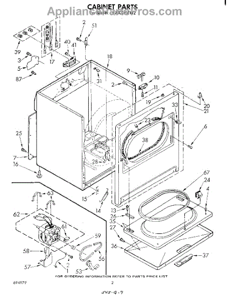 Fits all Whirlpool-made dryers (Whirlpool, Kenmore with prefix 110, Roper, KitchenAid, and Estate). Matching belt 341241 and rear support rollers 349241T. Whirlpool dryer repair manual 677818L.