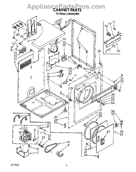 Fits all Whirlpool-made dryers (Whirlpool, Kenmore with prefix 110, Roper, KitchenAid, and Estate). Matching belt 341241 and rear support rollers 349241T. Whirlpool dryer repair manual 677818L.