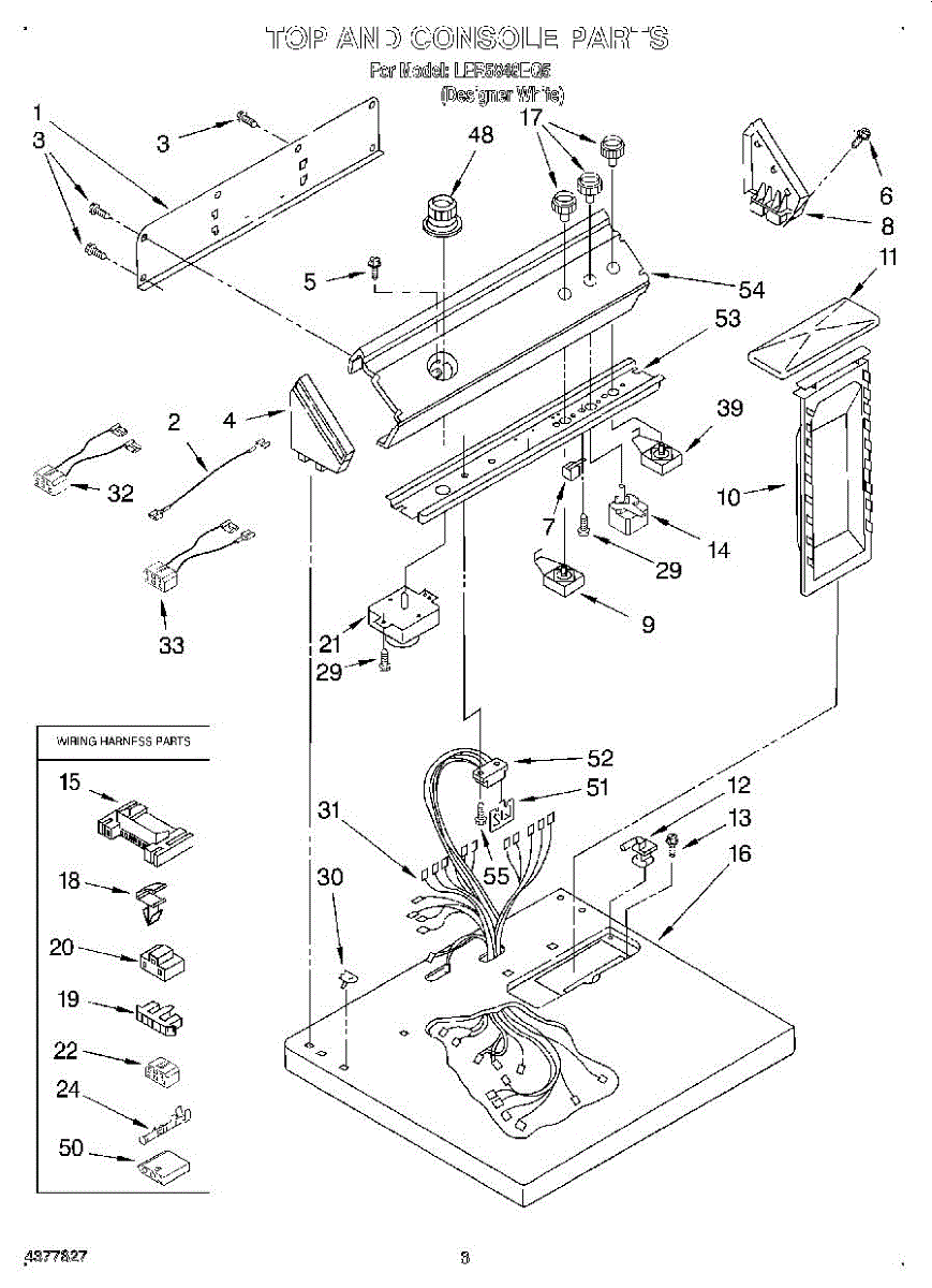 Wire harness assembly that routes power and control signals between dryer components. Replace if wires are damaged, worn, broken, or connections are loose.