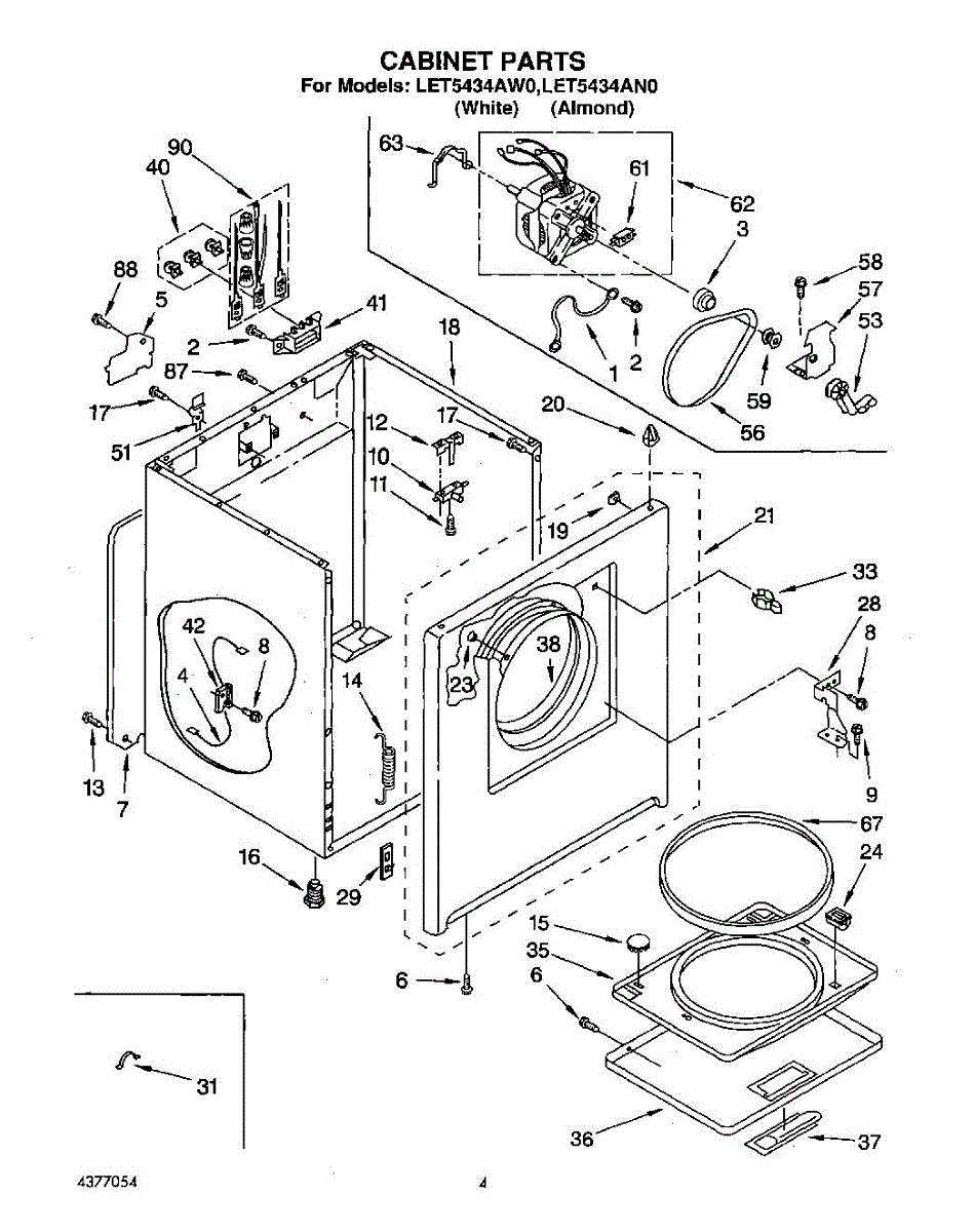 Parts for Whirlpool LET5434AW0: 02 - Section Parts