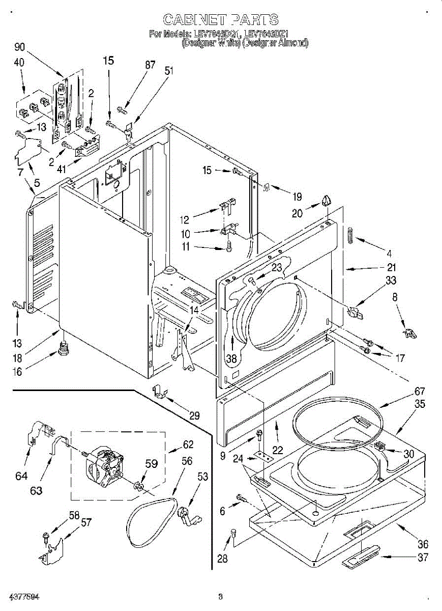 Parts for Whirlpool LEV7646DQ1: 02 - Section Parts