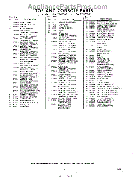 Parts for Whirlpool LFA7800W2: 06 - Section Parts