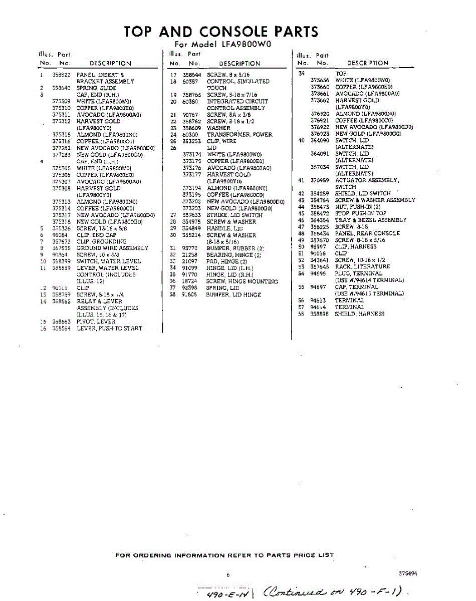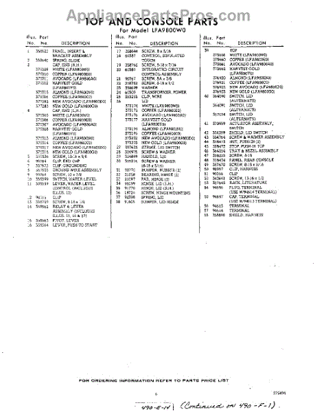 Parts for Whirlpool LFA9800W0: 06 - Section Parts