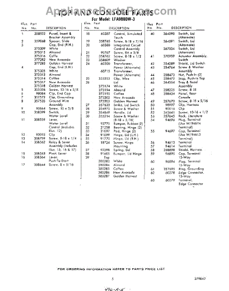 Parts for Whirlpool LFA9800W3: 05 - Section Parts