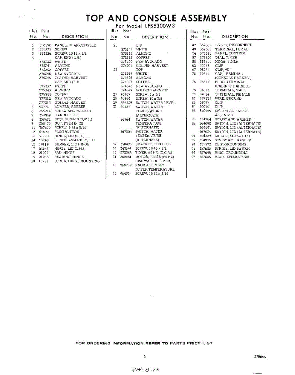 Parts for Whirlpool LFB5300W3: 05 - Section Parts