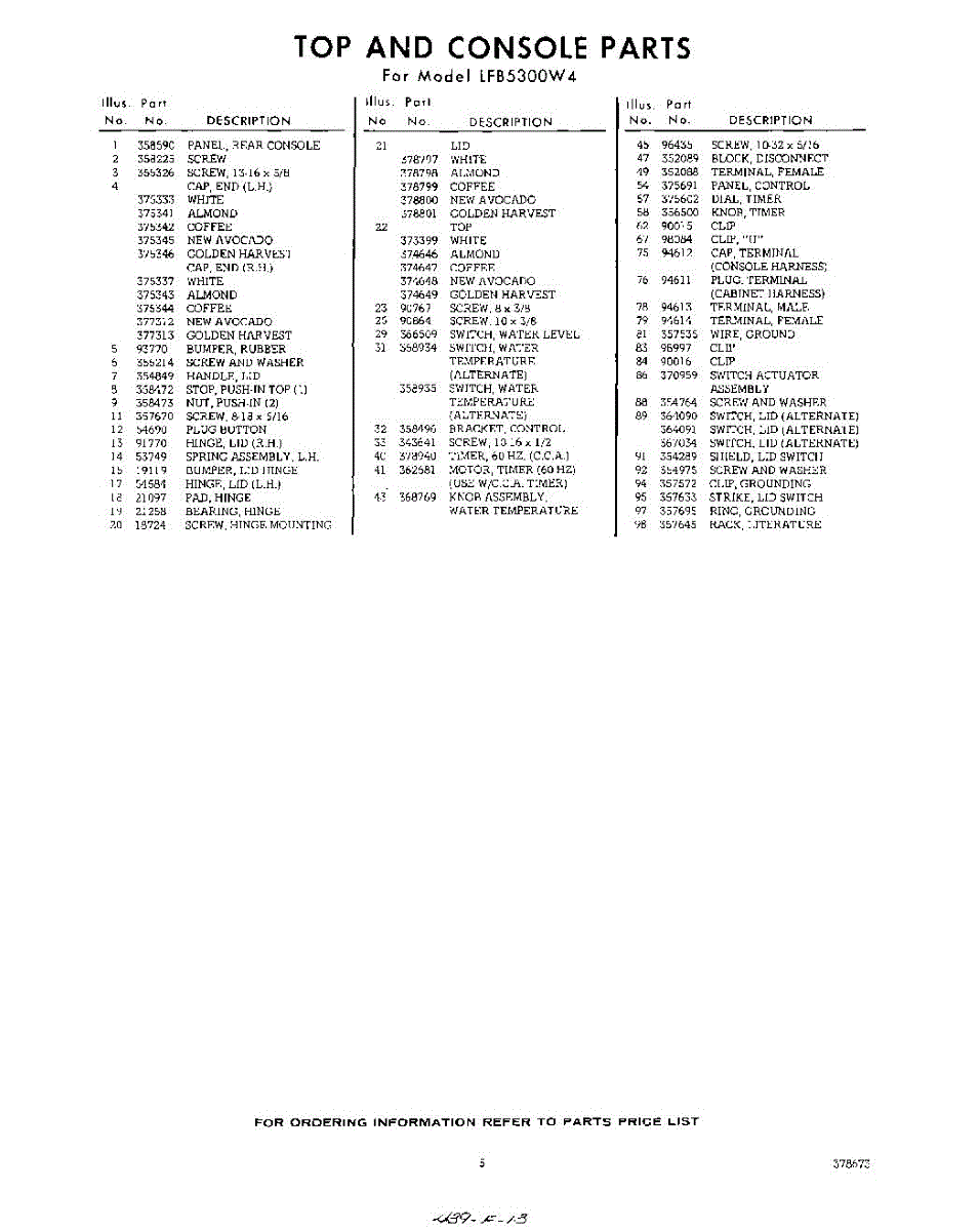 Parts for Whirlpool LFB5300W4: 05 - Section Parts