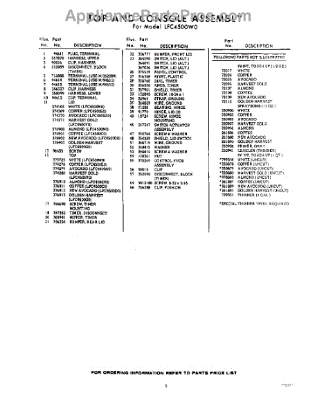 Parts for Whirlpool LFC4500W0: 05 - Section Parts
