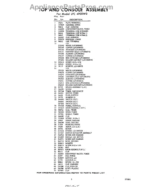 Parts for Whirlpool LFC4900W0: 05 - Section Parts