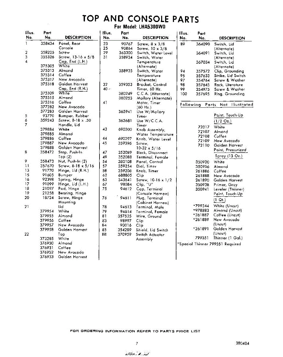 Parts for Whirlpool LHA5300W0: 07 - Section Parts
