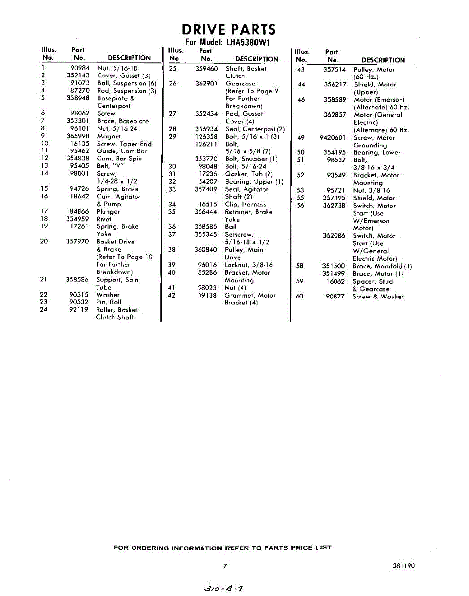 Parts for Whirlpool LHA5380W1: 07 - Section Parts