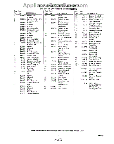 Parts for Whirlpool LHA5530W2: 07 - Section Parts