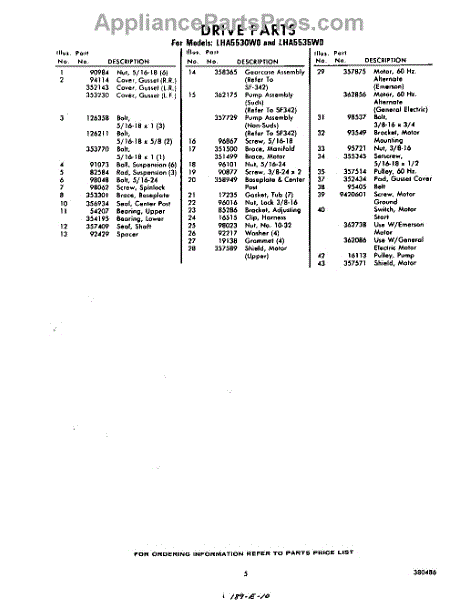 Parts for Whirlpool LHA5535W0: 05 - Section Parts