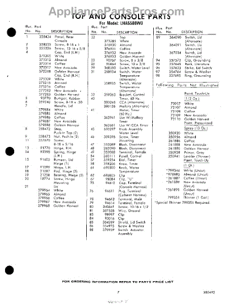 Parts for Whirlpool LHA5580W0: 07 - Section Parts