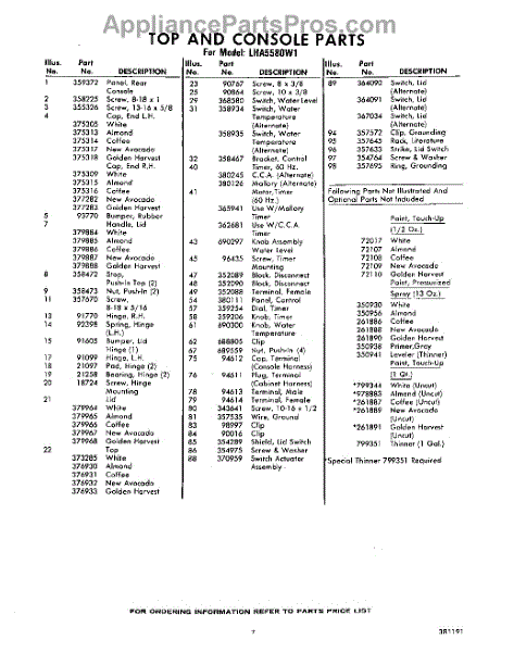 Parts for Whirlpool LHA5580W1: 07 - Section Parts