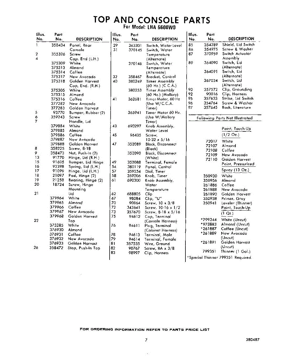 Parts for Whirlpool LHA5600W0: 07 - Section Parts