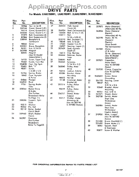 Parts for Whirlpool LHA5705W1: 07 - Section Parts