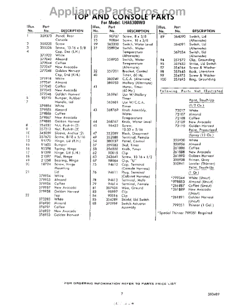 Parts for Whirlpool LHA6300W0: 07 - Section Parts